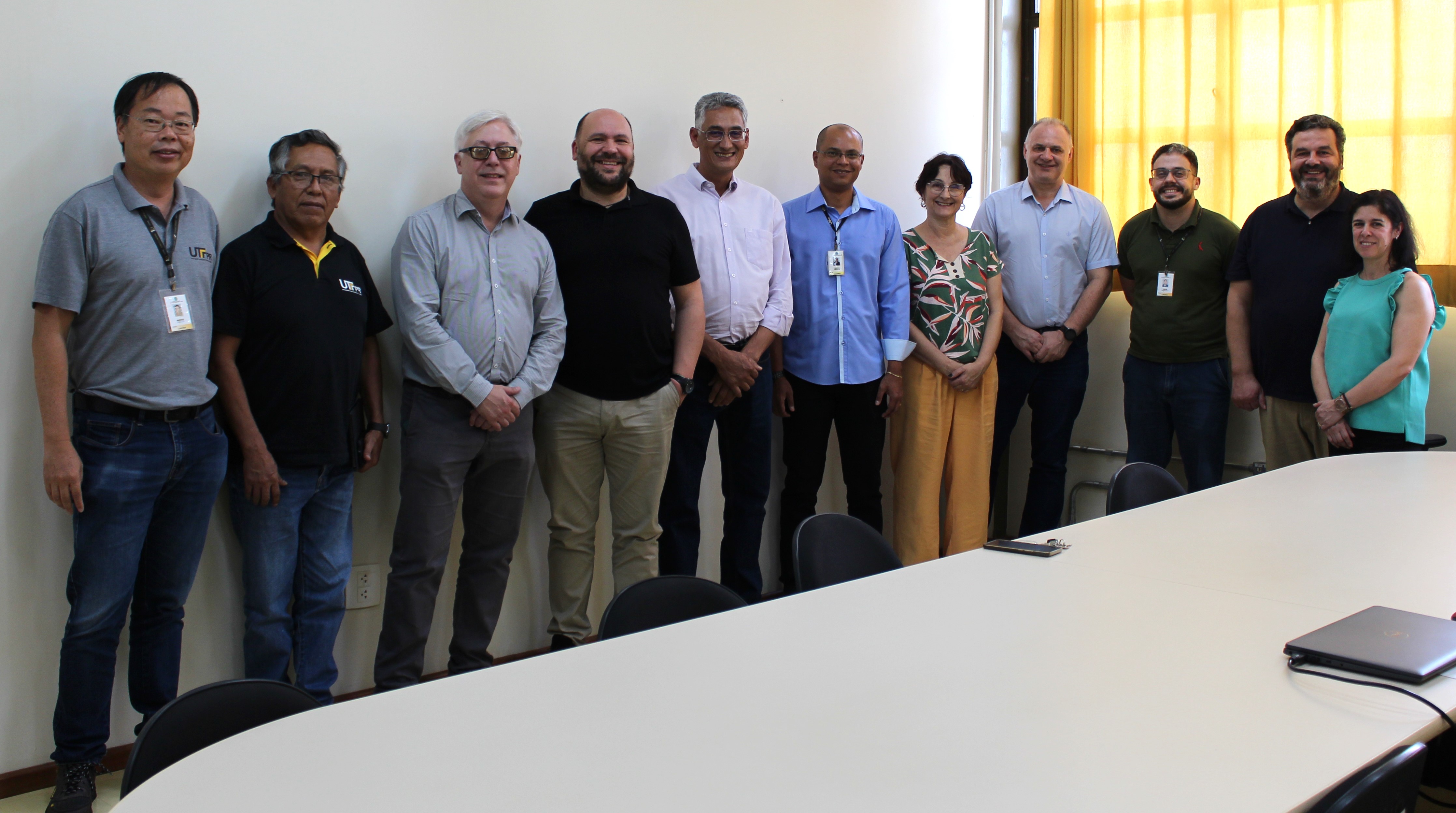 Na sala de reuniões do Gabinete, os professores portugueses, acompanhados pelo Diretor-Geral do Campus Cornélio Procópio , Prof. Márcio Jacometti, foram recebidos pelo Diretor-Geral do Campus, Prof. Sidney Alves Lourenço, pelo Diretor de Graduação e Educação Profissional, Prof. Walmir Eno Pottker, pelo Diretor de Relações Empresariais e Comunitárias, Prof. Marcos Massaki Imamura, pelo Prof. Marco Aurélio Toledo da Silva, representando a Diretoria de Pesquisa e Pós-Graduação, pela Profa. Amélia Elena Terrile, responsável pelo Departamento de Relações Interinstitucionais, e pelos Professores Genaro Marcial Mamani Gilapa (representando a Engenharia Mecânica) e Lucas Bonfim (Coordenador da Engenharia Química).