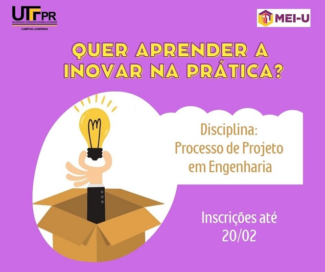 Alunos de todos os cursos de graduação do campus Londrina , da UTFPR, podem se inscrever para participar da disciplina optativa “Processo de Projeto em Engenharia" a ser ofertada pela terceira vez. O Edital publicado no final do mês de dezembro irá selecionar estudantes regularmente matriculados para cursarem a referida disciplina no primeiro semestre letivo de 2022.
