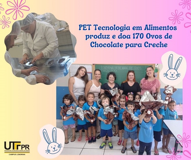 O grupo PET Tecnologia em Alimentos, da UTFPR Londrina , produziu e distribuiu 170 Ovos de Chocolate para as crianças do Centro Municipal de Educação InfantilYolanda Salgado Vieira Lima, localizado na Rua Maria Abucarub Autoun, n. 33, no Conjunto Alexandre Urbanas, que fica próximo ao Campus Londrina .
