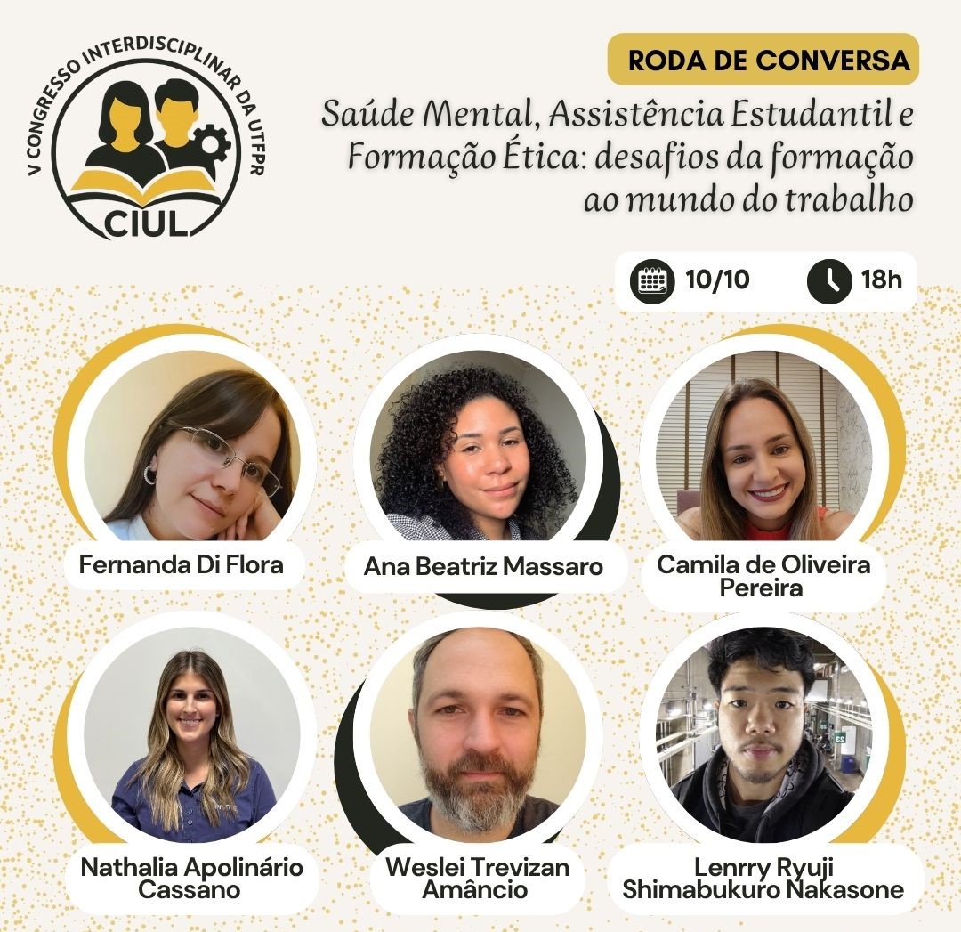 O V Congresso Interdisciplinar Universitário de Londrina (CIUL) chega ao fim na próxima sexta-feira, dia 10 de outubro, às 18h, com a realização de sua atividade de encerramento: uma roda de conversa transmitida pelo canal institucional da UTFPR Londrina . O encontro terá como tema “Saúde Mental, Assistência Estudantil e Formação Ética: desafios da formação ao mundo do trabalho” e reunirá professores, profissionais e egressos para discutir questões que atravessam a vida universitária e influenciam o percurso até o mundo profissional.