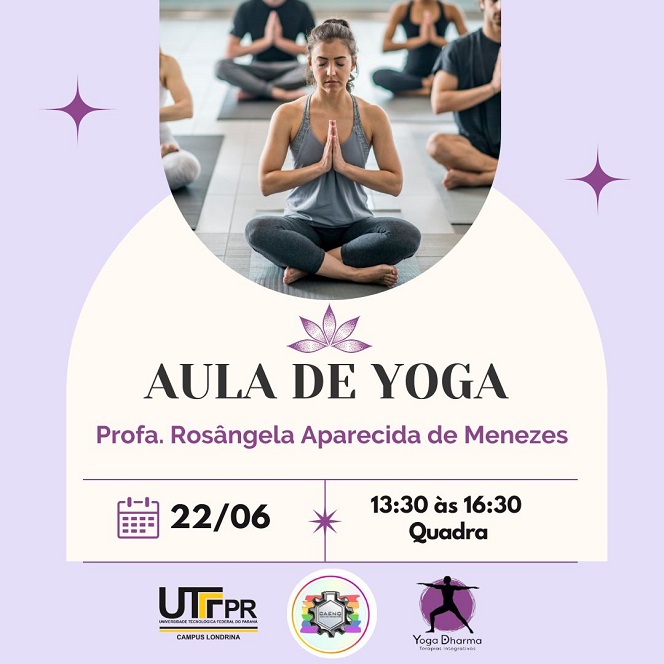 O Centro Acadêmico de Engenharia Química (CAENQ) promove nesta quinta-feira, dia 22 de junho, na Quadra, às 13h30, uma “Aula de Yoga”, que será ministrada pela professora Rosângela Aparecida de Menezes, do Espaço Yoga Dharma.