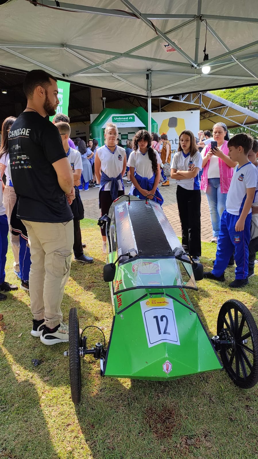 Direcionada para alunos de colégios locais e regionais, a Feira proporcionou oficinas e atividades interativas, xadrez gigante, oficina de minifoguetes, caminhão da Expedição do Conhecimento do Parque Tecnológico Itaipu-Brasil, e exposição dos protótipos de eficiência energética (Green e-Car e Hudson, Equipe Pé Vermelho), premiados na última edição da Shell Eco-marathon 2024, etapa Brasil.