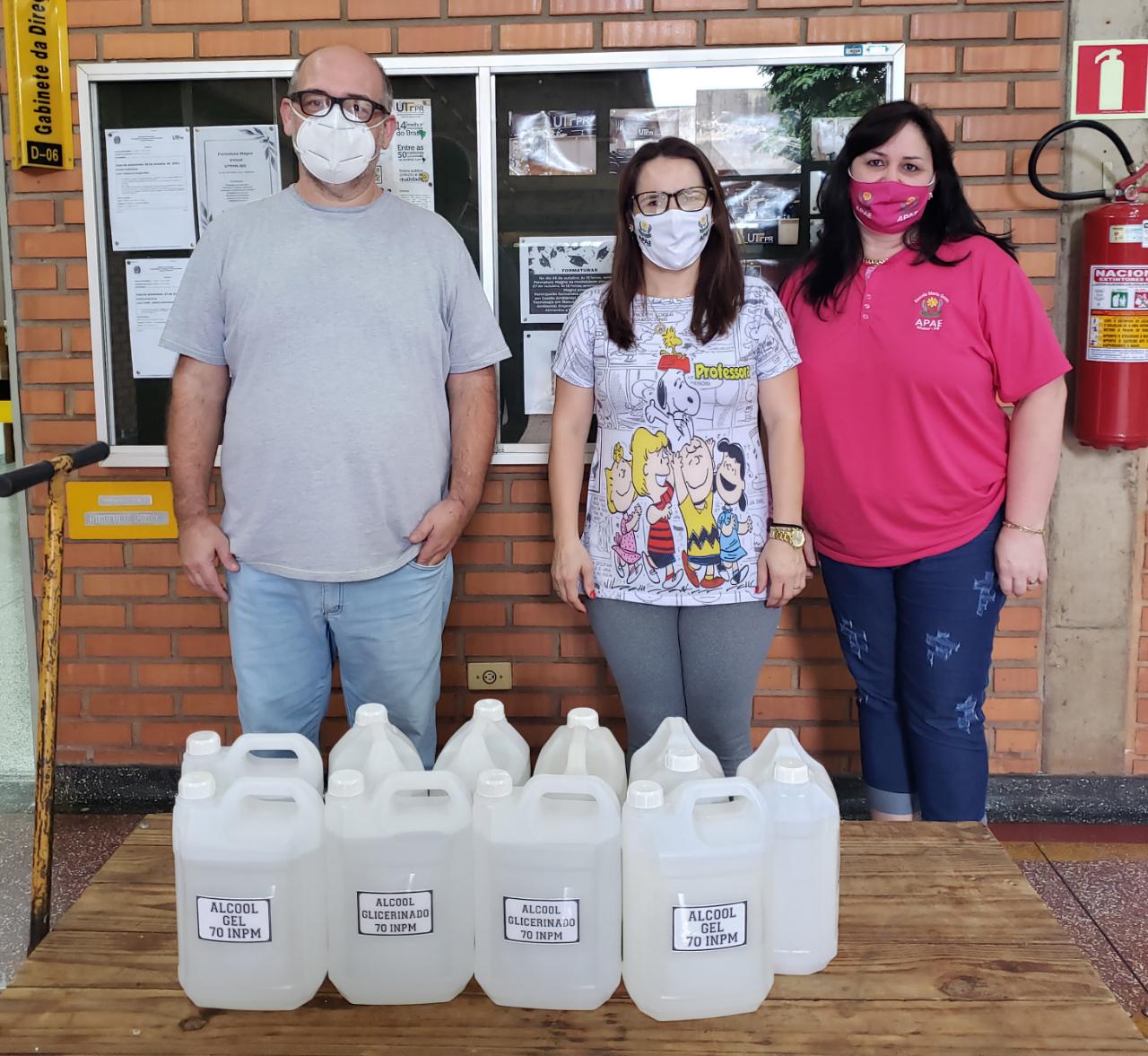 Por meio do projeto de extensão "Produção de Saneantes e derivados: Fábrica Escola" os professores Alex Sanches Torquato, Paulo Rodrigo Stival Bittencourt e Oldair Donizetti Leite, do Departamento de Química do Campus Medianeira , produziram álcool glicerinado 70° INPM que foram doados para a APAE/Escola Maria Goretti da cidade de Missal. Os produtos serão destinados à prevenção da Covid-19.