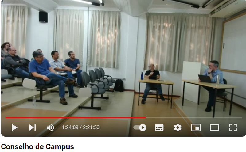 No dia 6 de setembro de 2024, ocorreu a reunião do Conselho de Campus da UTFPR – Pato Branco, no Miniauditório, com início às 14h. Durante a reunião, foi discutida e aprovada a proposta de priorização de objetivos, metas e ações a serem trabalhados pela Direção-Geral (DIRGE) e pelas diretorias específicas — Diretoria de Graduação e Educação Profissional (DIRGRAD), Diretoria de Pesquisa e Pós-Graduação (DIRPPG), Diretoria de Relações Empresariais e Comunitárias (DIREC) e Diretoria de Planejamento e Administração (DIRPLAD) — até o final de maio de 2025, como parte da quarta etapa do Planejamento Participativo da UTFPR-PB. A gravação da reunião está disponível no canal oficial da UTFPR-PB no YouTube.