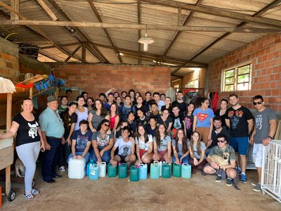 A ação consistiu de duas etapas: na primeira, os estudantes extensionistas Thiago Ribeiro dos Santos, Maria Eduarda Schaitler, Jéssica Souza, Natalia Costa, Danilo Urzulin, Edward Townsend, João Candido e Julia Nunes, do projeto de cunho social, que envolve a produção de sabão, conduziram aulas experimentais ensinando os calouros a produzirem o material de limpeza. Durante a ação, foram produzidos mais de 85 litros de sabão líquido, a partir de óleo usado, que posteriormente foi doado para a Associação.