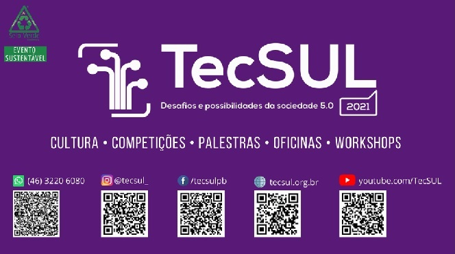 De 03 a 05 de novembro será realizada, de forma híbrida, a edição do TecSUL 2021, com o tema “Desafios e possibilidades da Sociedade 5.0”, contemplando na programação a oferta de minicursos, palestras, debates, competições tecnológicas e concursos culturais.
