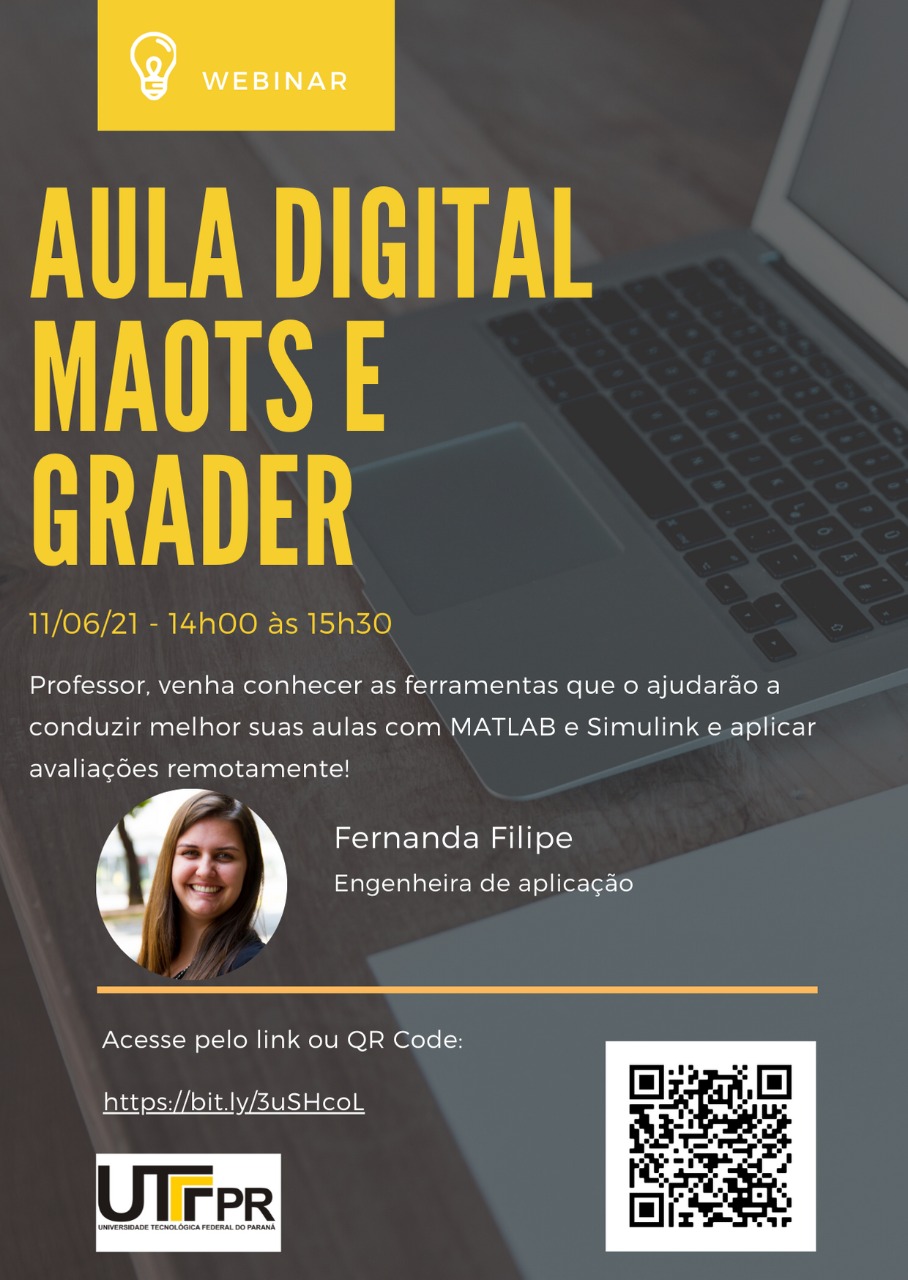 Os treinamentos serão realizados de forma online, no dia 11 de junho, a partir das 14h. Esse encontro busca demonstrar as possibilidades oferecidas pelo Matlab e saber como utilizá-lo em Ambiente Virtual de Ensino e Aprendizagem para os mais variados perfis de disciplinas. As inscrições podem ser realizadas através do site: bit.ly/CursoGraderUTFPR