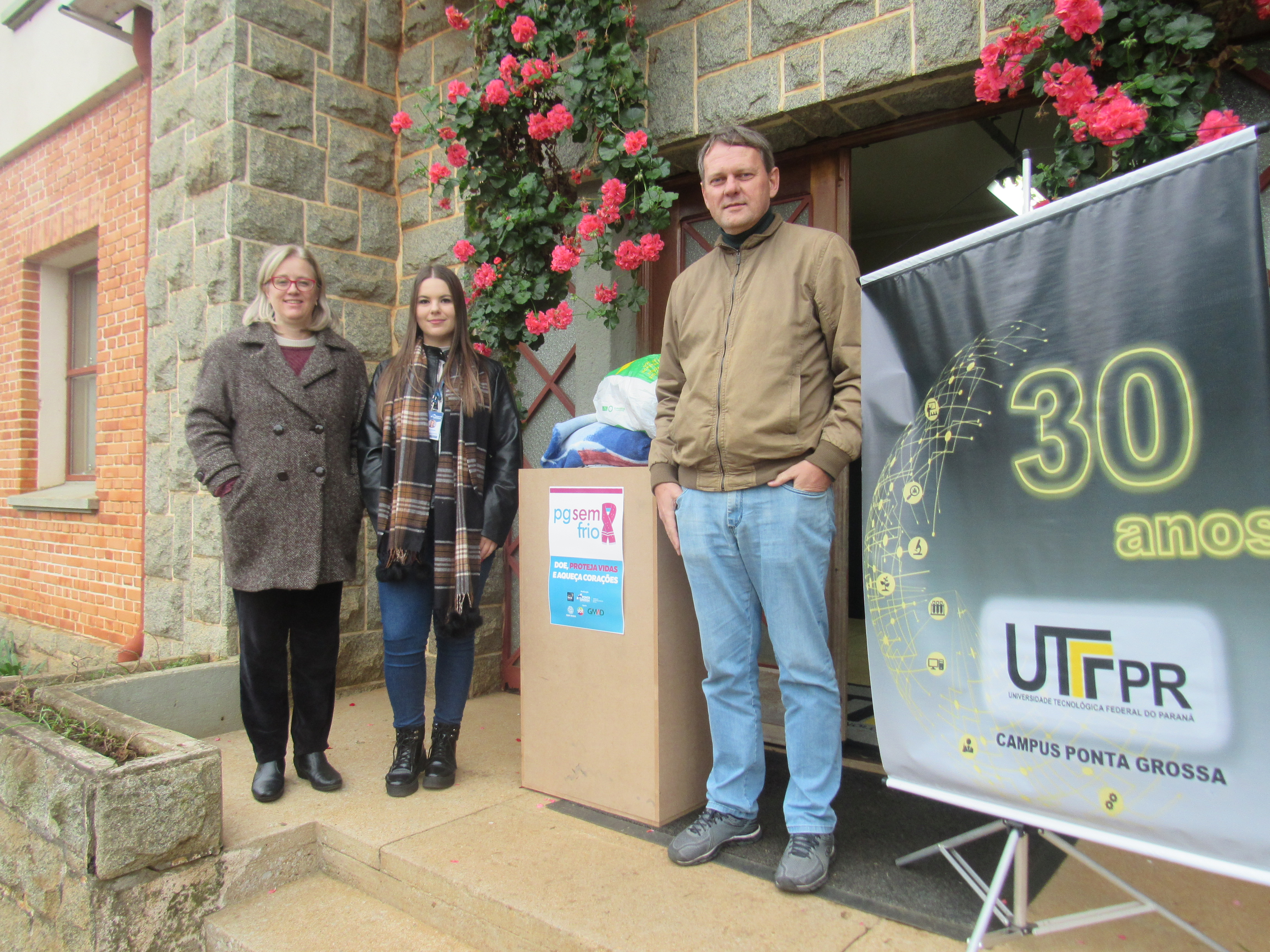 Na tarde de sexta-feira (16) de junho, o Campus Ponta Grossa , da Universidade Tecnológica Federal do Paraná (UTFPR), fez o primeiro repasse das roupas arrecadas para a campanha PG SEM FRIO 2023. A entrega foi realizada pelo Diretor-geral, Abel Dionizio Azeredo, e a servidora Simone Freire Rodrigues, articuladora da campanha no campus.