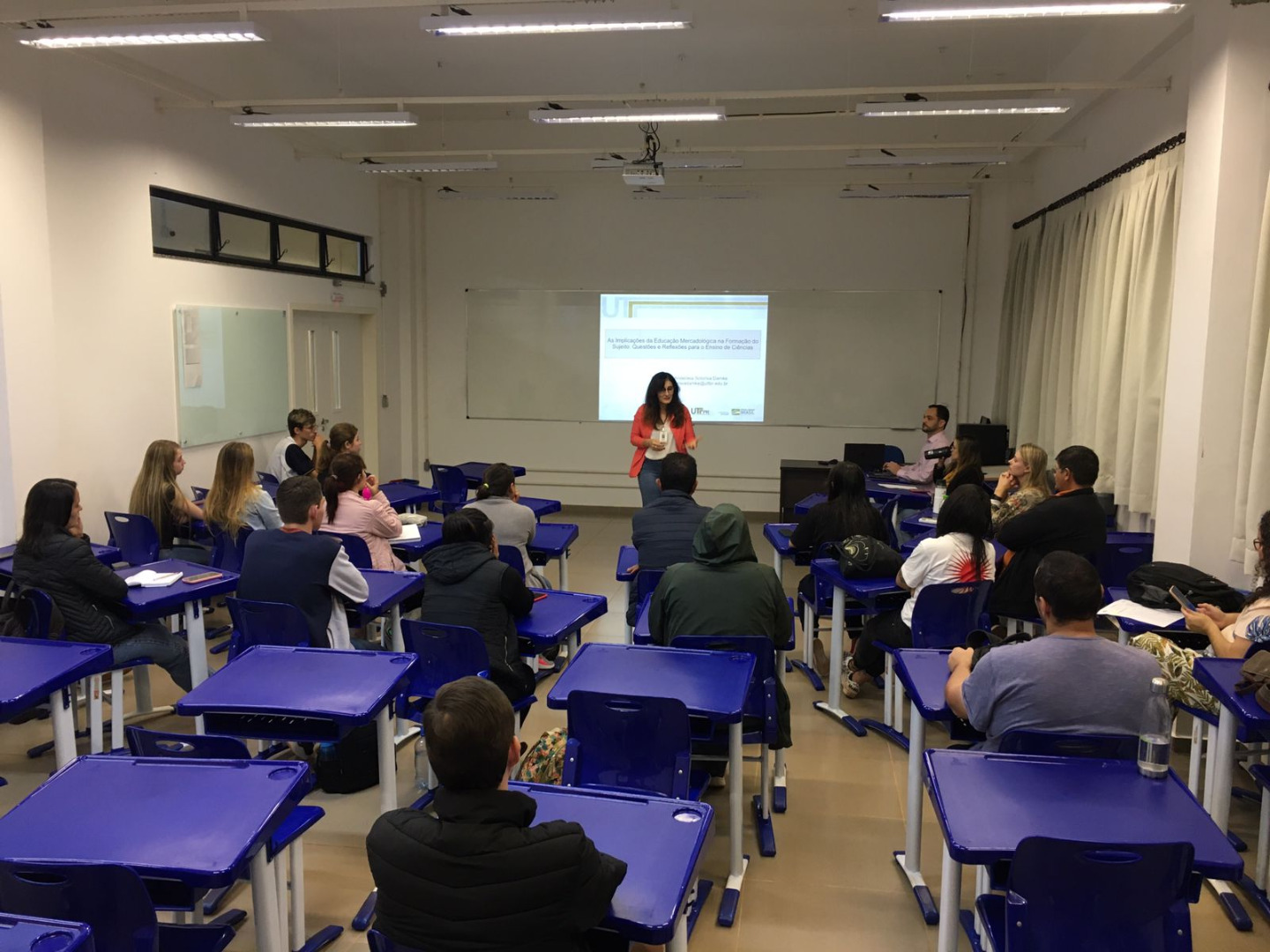No dia 28 de abril, sexta-feira, foi realizada a palestra "As implicações da educação mercadológica na formação do sujeito: questões e reflexões para o ensino de ciências", ministrada pela Prof. Dr. Anderleia Sotoriva Damke. A palestra faz parte do Projeto de Extensão Ensino de Ciências e Biologia, que é aberto para estudantes de ensino superior, médio e professores.