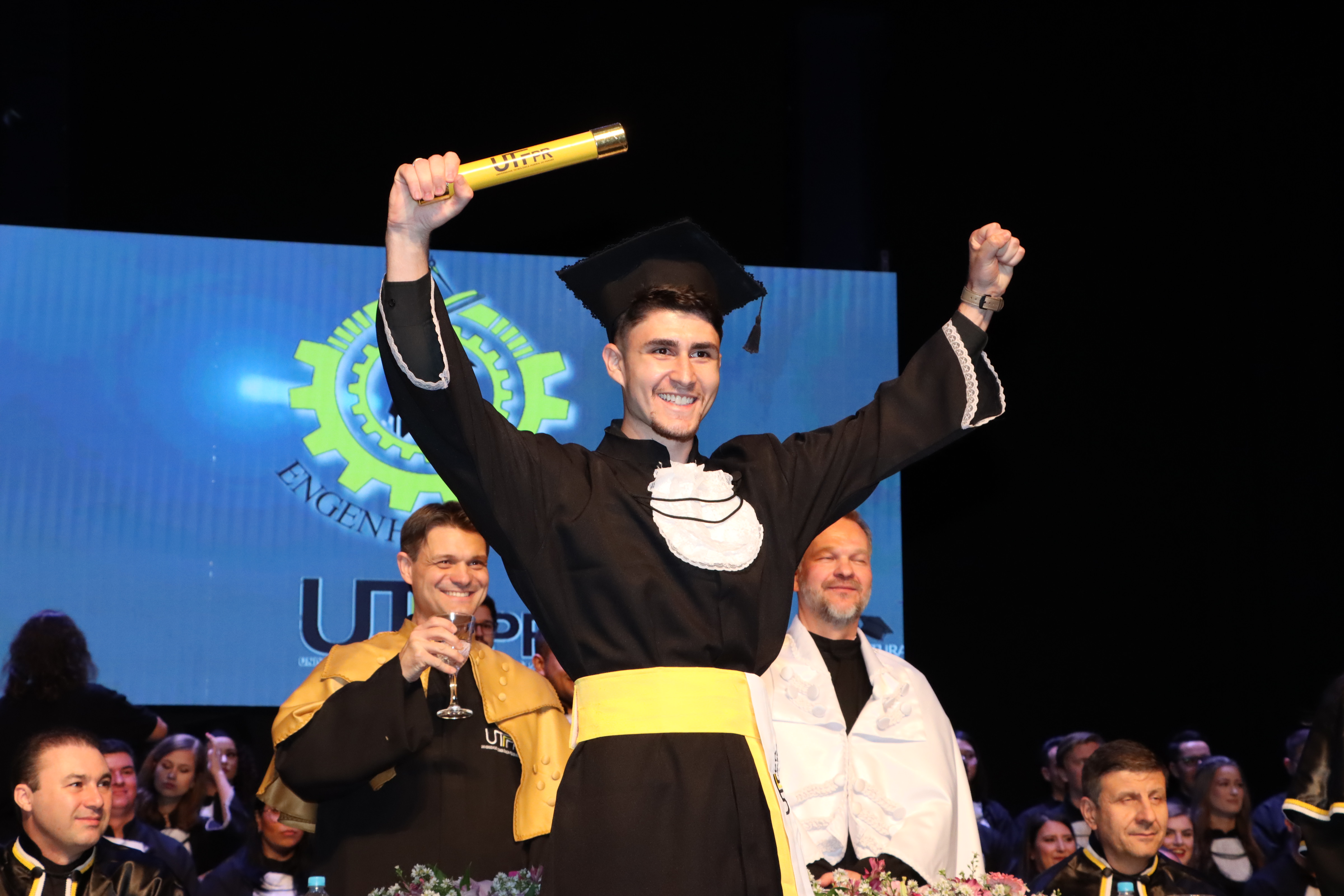A cerimônia aconteceu no Teatro Municipal de Toledo e contou com a presença do Reitor da Universidade Tecnológica Federal do Paraná, prof. Marcos Flávio de Oliveira Schiefler Filho, e do Diretor Geral do Campus Toledo , prof. Elder Elisandro Schemberger.