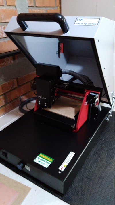 A fresadora PCB-Proto 1S permite confeccionar placas de circuito impresso para equipamentos eletrônicos. Produz placas com detalhes inferiores a 8 mils (0,2 mm), com resolução de 0,625μm, furanção entre 0,1 mm até 2,5 mm e área de usinagem de 305 mm x 220 mm.