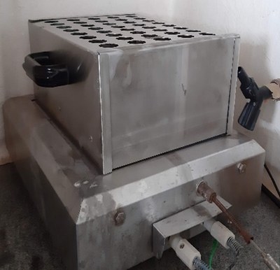 Descritivo sucinto: Bloco digestor micro para proteínas em alumínio fundido- caixa externa em aço inox AISI 304.