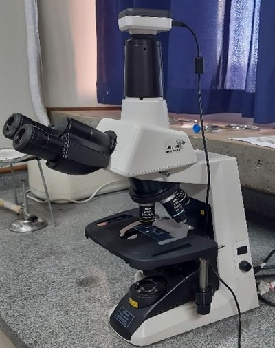 Descritivo sucinto: Microscópio biológico binocular, tubo prismático tipo Siedentopf inclinação de 30°c, com pinça para fixação de 2 lâminas. Inclinação 30°, rotação 360°.