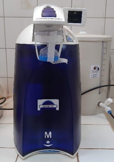 Descritivo sucinto: Sistema de purificação e produção de água ultrapura, com as seguintes características técnicas água grau reagente ASTM tipo I. Para utilização em ABS.