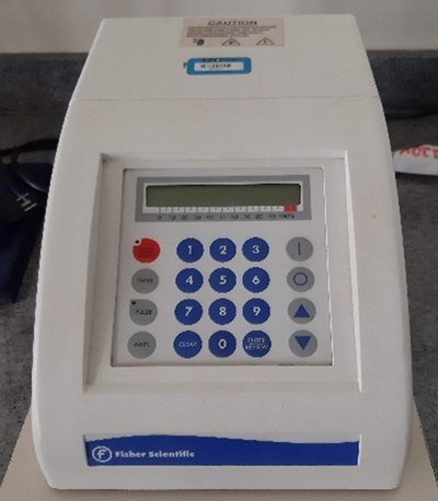 Descritivo sucinto: Aparelho de ultrassom do tipo Sonic dismembrator, 117V, 50-60 hz, 4 amperes. Dimensões do gerador16 l x 7.5 w x 9.5 in. 17 lb. Potência de 400 W