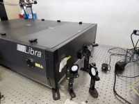 Laser femtossegundos com emissão pulsada (kHz) em comprimento de onda de 800 nm. Possui amplificador ótico paramétrico ultrarápido, pulsos de femtossegundos, controlados por computador para extensão da região espectral operacional de sistemas de laser de femtosegundos (OPerA Solo Ultrafast Optical Parametric Amplifier 240 nm a 20.000 nm).