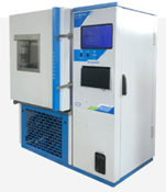 Câmara climática com controle de temperatura entre 10 e 100ºC e umidade entre 30% e 100% para ensaios de durabilidade e/ou acelerados.